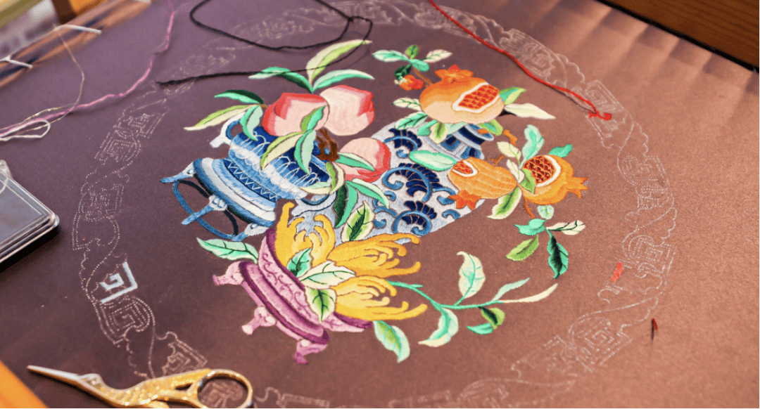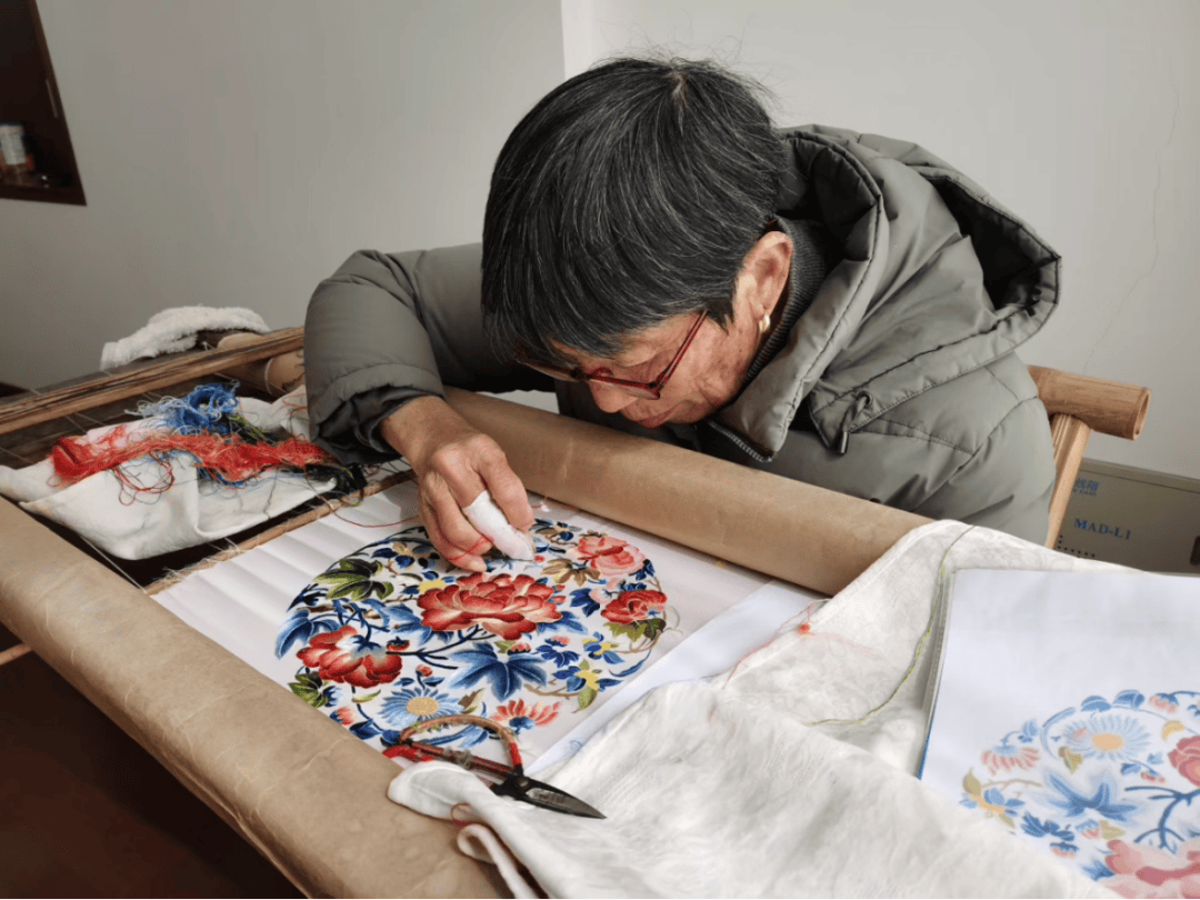 在镇政府的协调下,京绣项目成功入驻黄山店非遗馆。展馆内系统呈现京绣的前世今生,真正实现“见人见物见生活”,轻资产、标准化的体验体系,成为非遗文化与农文旅深度融合的商业范式;天然染材包、自染绣文创产品的年销售额稳步增长;工坊模式已从单点尝试,升级为可复制的商业生态模式。