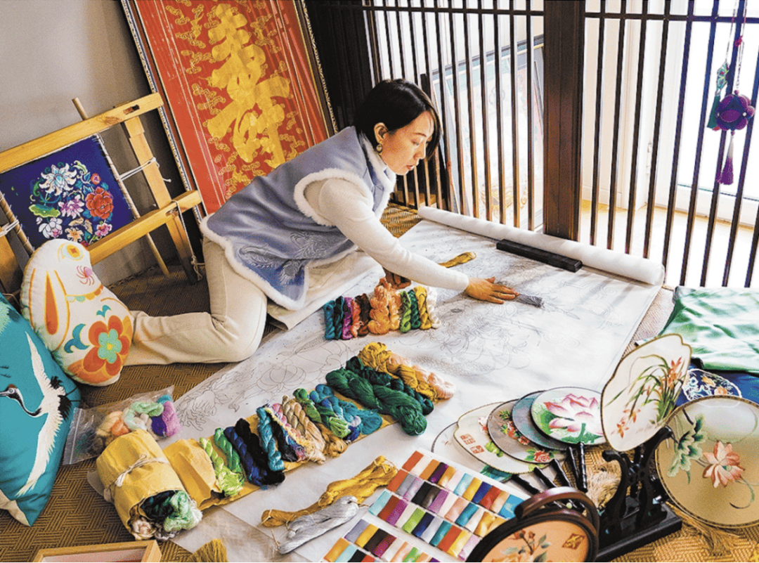 曾几何时,京绣作为宫廷艺术的瑰宝,被供奉在博物馆的玻璃柜中,精美却遥远。“我们不做‘橱窗里的非遗’!”深耕京绣数十载,刘晓燕深知:技艺若不能融入生活,终将沦为标本。